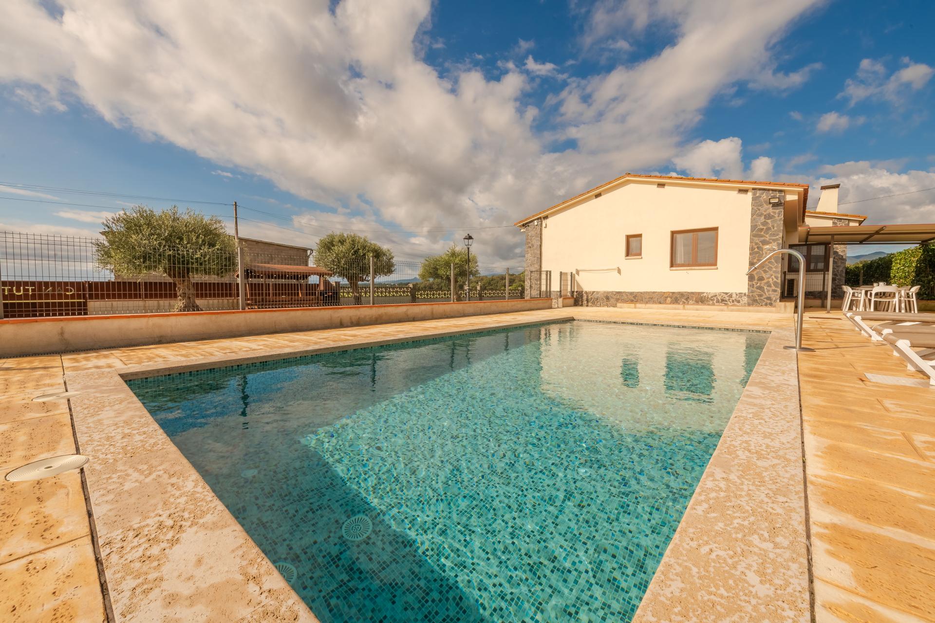 Des extérieurs conçus pour en profiter: Piscine, clôture de sécurité pour la piscine, jardin, maison totalement clôturée, barbecue au charbon de bois , 6 chaises longues.